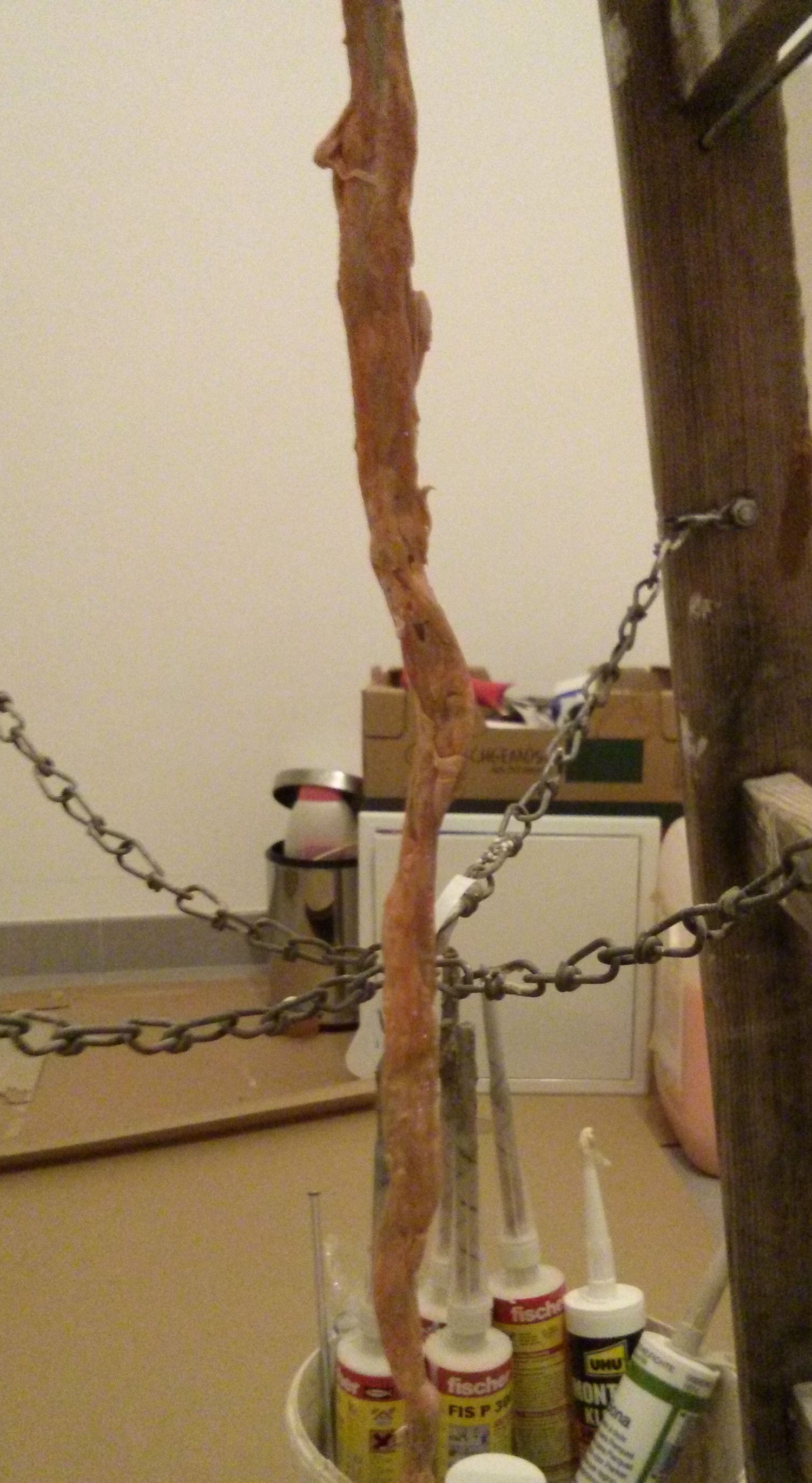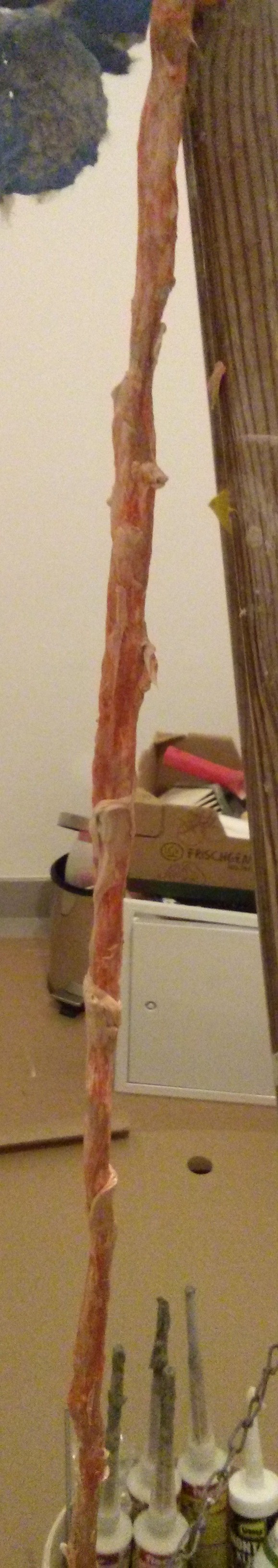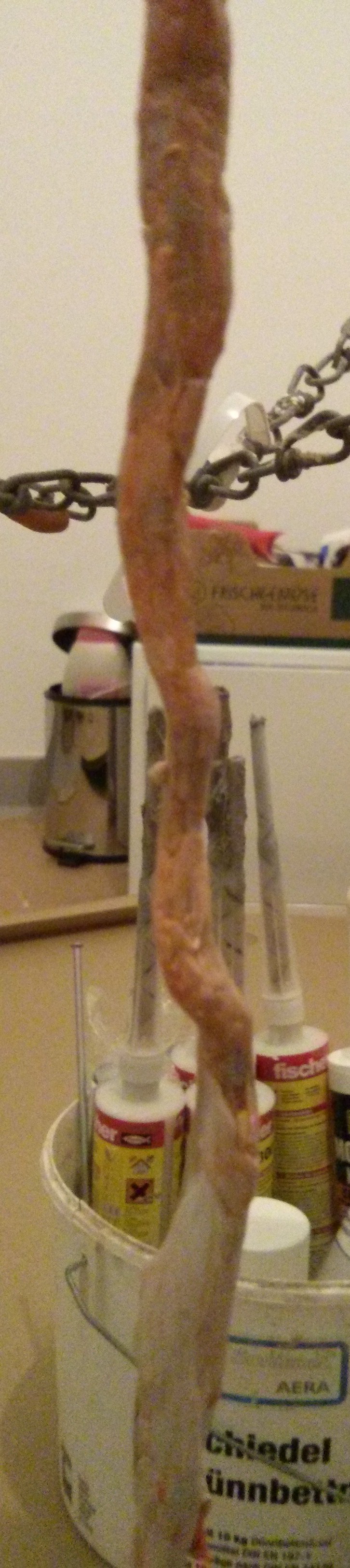 3. Put on one-way gloves (made of plastic or rubber). Take the mixture in your palm and put it on the "cling rope" by pulling your fist over it. Repeat that step over and over every couple of hours. Which will make it look like this: